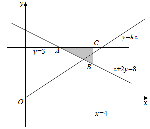 解答 解:作出平面區(qū)域如圖:![]()