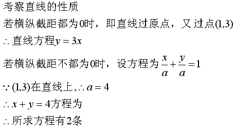 過點(diǎn)(1,3)且橫縱截距相等的直線有