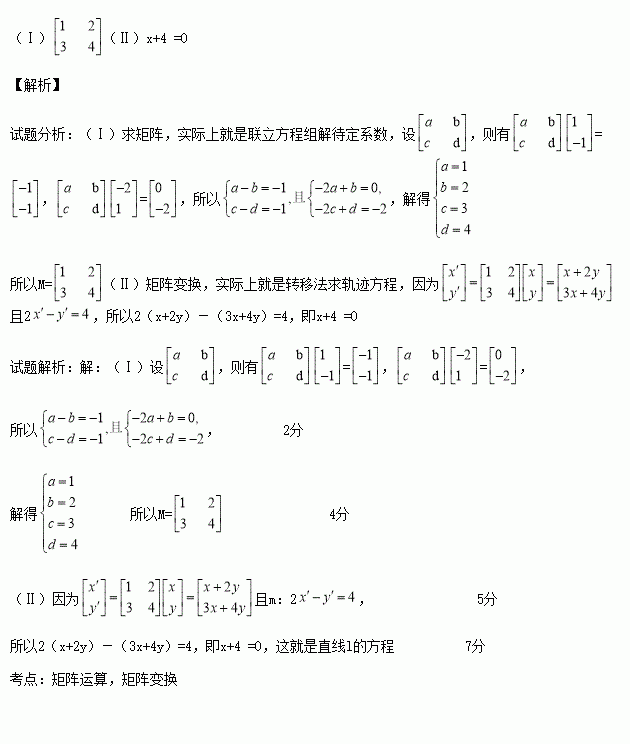 二階矩陣M對應(yīng)的變換將點(1,-1)與(-2,1)分別變換成點(-1,-1)與(0,-2).