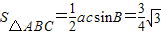 (2)由(1)中得到角B的度數(shù)求出sinB和cosB的值,根據(jù)余弦定理表示出b2,利用完全平方公式變形后,將b,a+c及cosB的值代入求出ac的值,然后利用三角形的面積公式表示出△ABC的面積,把a(bǔ)c與sinB的值代入即可求出值.
