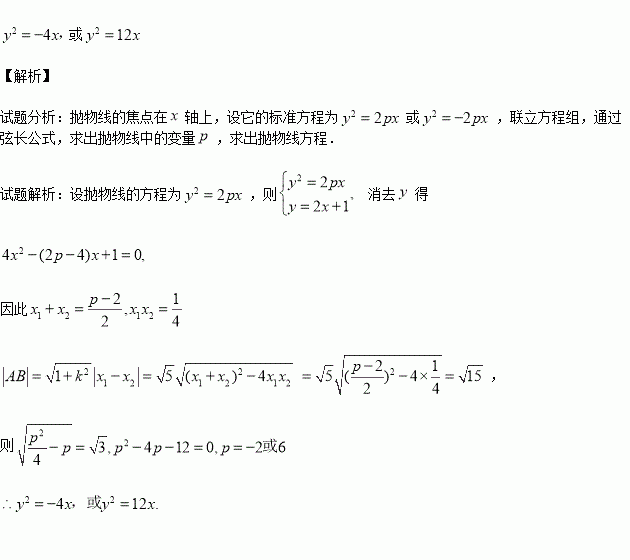 已知頂點(diǎn)在原點(diǎn),焦點(diǎn)在