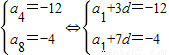 【答案】分析:(Ⅰ)可設等差數(shù)列{an}的公差為d,由a4=-12,a8=-4,可解得其首項與公差,從而可求得數(shù)列{an}的通項公式;