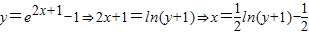 【答案】分析:利用指數(shù)式與對(duì)數(shù)式的互換關(guān)系,從條件中函數(shù)式y(tǒng)=e2x+1-1中反解出x,再將x,y互換即得.