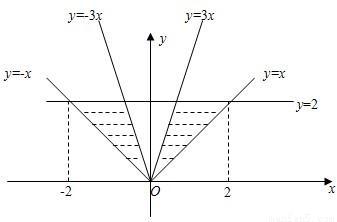 【答案】分析:①分情況討論去絕對值分兩種情況畫可行域②z為目標(biāo)函數(shù)直線縱截距相反數(shù)③當(dāng)直線y=2x-z經(jīng)過(-2,2)時,-z取得最大值,則z取得最小值