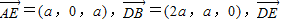 則D(0,0,0),B(2a,a,0),E(a,a,a,),A(0,a,0),=(a,a,a),