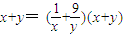 【答案】分析:x+y等于x+y乘以,展開(kāi),利用基本不等式;注意等號(hào)成立的條件.