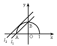 解法 1:曲線C中,y≥0,因此l和C有兩個(gè)公共點(diǎn),等價(jià)于方程組C 和l有兩個(gè)公共點(diǎn),等價(jià)于上述方程有兩個(gè)不等非負(fù)實(shí)數(shù)解,于是 解得 解法 2:方程y=x+b表示斜率為1的平行直線系;方程