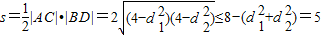 【答案】分析:設圓心到AC、BD的距離分別為d1、d2,則 d12+d22 =3,代入面積公式s=AC×BD,使用基本不等式求出四邊形ABCD的面積的最大值.