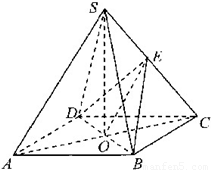 如圖,在四棱錐S-ABCD中,底面ABCD是正方形,四個側(cè)面都是等邊三角形,AC與BD的交點為O,E為側(cè)棱SC上一點.