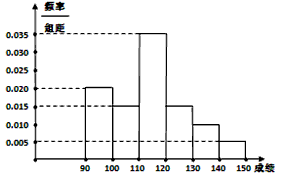 (3)若用此樣本去估計這個省考生成績情況,隨機從這省考生(人數(shù)很多)中任選3名學生,求成績不低于120分的人數(shù)