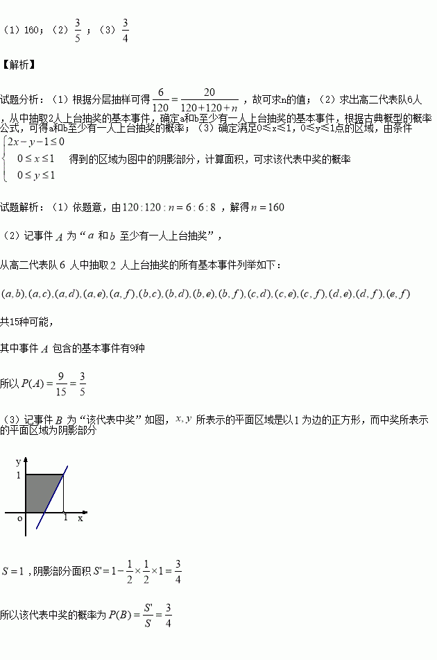 人.為了活躍氣氛,大會組委會在頒獎過程中穿插抽獎活動,并用分層抽樣的方法從三個代表隊中共抽取20人在前排就坐,其中高二代表隊有6人.