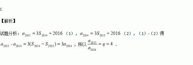 設(shè)等比數(shù)列{an}的前n項(xiàng)和Sn,若a2015=3S2014+2016,a2014=3S2013+2016則公比q=( )