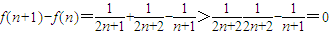 (2)分別表示出f(n)和f(n+1),通過f(n+1)-f(n)>0判斷f(n)單調(diào)遞增,故f(n)的最小值是