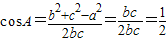 在△ABC中,角A、B、C所對(duì)的邊分別為a、b、c,且b2+c2=a2+bc.