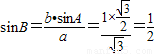 (2)由a,b及sinA的值,利用正弦定理求出sinB的值,由b小于a,根據(jù)三角形的邊角關(guān)系得到B小于A,由A的度數(shù)及B為三角形的內(nèi)角,可得出B的取值范圍,進(jìn)而根據(jù)sinB的值,利用特殊角的三角函數(shù)值即可求出B的度數(shù).