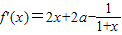 設(shè)函數(shù)f(x)=x2+2ax-ln(1+x)+1.