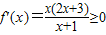 (2)當(dāng)時,f(x)=x2+x-ln(1+x)+1,定義域為(-1,+∞)