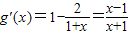 令g′(x)>0,x>-1可得x>1,令g′(x)<0,x>-1,可得-1<x<1,