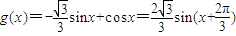 【答案】分析:根據(jù)已知中函數(shù)f(x)=sinx+acosx的圖象的一條對稱軸是,我們求出a的值后,即可得到函數(shù)g(x)的解析式,利用輔助角公式,將函數(shù)g(x)的解析式化為正弦型函數(shù)的形式,由正弦函數(shù)的形式,即可得到結(jié)果.