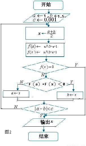 寫出用二分法求方程x3-x-1=0在區(qū)間[1,1.5]上的一個解的算法(誤差不超過0.001),并畫出相應的程序框圖及程序.