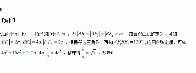 為等邊三角形,則雙曲線的離心率為