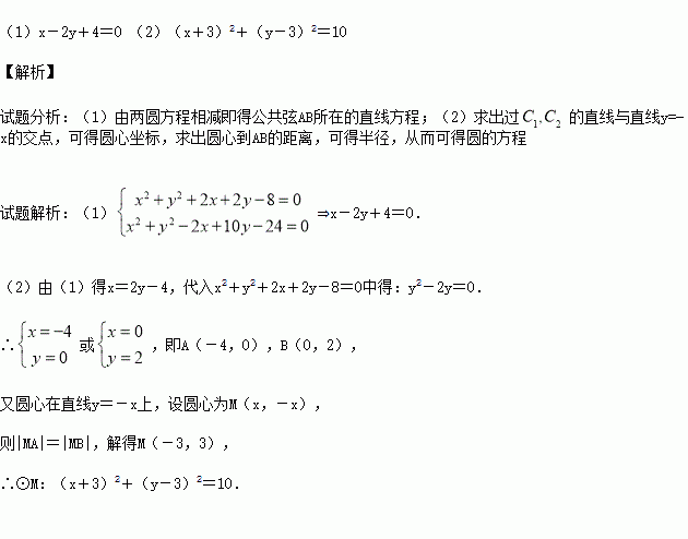 已知圓C1:x2+y2+2x+2y-8=0與圓C2:x2+y2-2x+10y-24=0相交于A、B兩點,