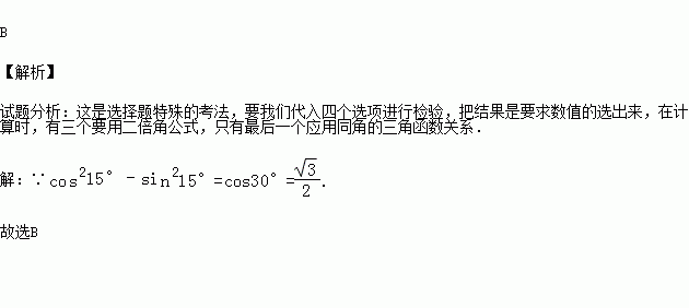 A.2sin15°cos15° B.cos215°﹣sin215°