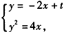 因為直線l與拋物線C有公共點,所以△=4+8t≥0,解得t≥
