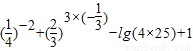 【答案】分析:先利用對(duì)數(shù)、指數(shù)的運(yùn)算法則進(jìn)行計(jì)算,前兩個(gè)式子的值直接利用冪的運(yùn)算進(jìn)行計(jì)算,第三、四個(gè)式子利用對(duì)數(shù)的運(yùn)算性質(zhì)進(jìn)行計(jì)算,再結(jié)合任何一個(gè)非零的數(shù)的零次冪等于1計(jì)算最后一個(gè)式子的值.從而問題解決.