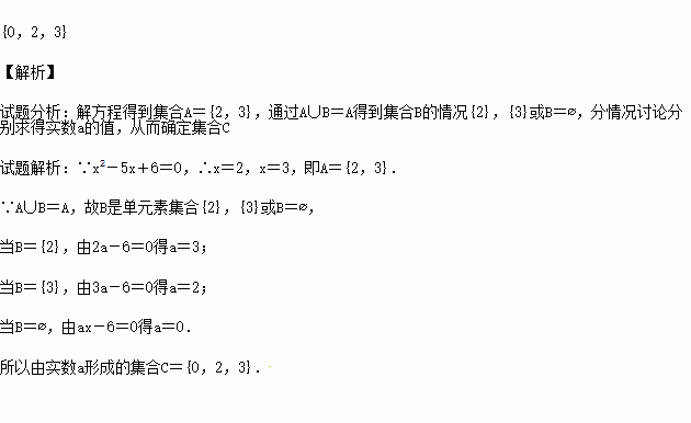集合若A={x|x2-5x+6=0},B={x|ax-6=0},且A∪B=A,求由實(shí)數(shù)a組成的集合C