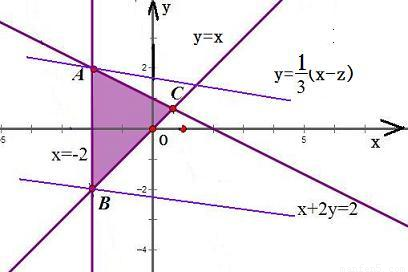 解答:解:變量x,y滿足約束條件所對應(yīng)的平面區(qū)域為△ABC如圖,化目標(biāo)函數(shù)z=x-3y為