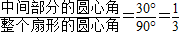 如圖,在圓心角為90°的扇形中,以圓心O為起點作射線OC,則使得∠AOC和∠BOC都不小于30°的概率是 .