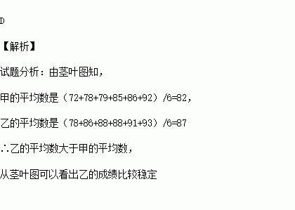 (如圖)為了從甲乙兩人中選一人參加數(shù)學(xué)競(jìng)賽,老師將二人最近6次數(shù)學(xué)測(cè)試的分?jǐn)?shù)進(jìn)行統(tǒng)計(jì),甲乙兩人的平均成績(jī)分別是