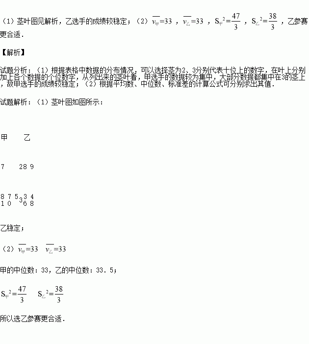 (1)畫(huà)出莖葉圖,由莖葉圖判斷哪位選手的成績(jī)較穩(wěn)定?