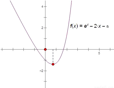 若函數(shù)f(x)=ex-2x-a在R上有兩個零點(diǎn),則實數(shù)a的取值范圍是 .