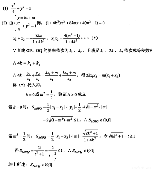 依次成等差數(shù)列,求△OPQ面積的取值范圍.