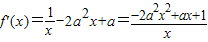 2 當(dāng)a>0時(shí),f′(x)≤0(x>0)等價(jià)于(2ax+1)(ax-1)≥0(x>0),即