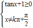 【答案】分析:根據(jù)正切函數(shù)的定義域,以及開偶次根,被開方數(shù)大于等于0,解三角不等式即可.