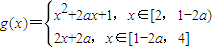 當(dāng)x∈[1-2a,4]時,g(x)最小值為g(1-2a)=2-2a.