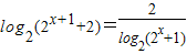 【答案】分析:根據(jù)對(duì)數(shù)的運(yùn)算性質(zhì)可將方程化為1+log2(2x+1)=然后可令t=log2(2x+1)且t>0則方程又轉(zhuǎn)化為關(guān)于t的方程t2+t-2=0然后可求出t進(jìn)而求出x.
