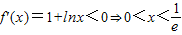 分析:(1)由f(x)=xlnx,知f′(x)=1+lnx,x>0,由此能求出函數(shù)f(x)的減區(qū)間.