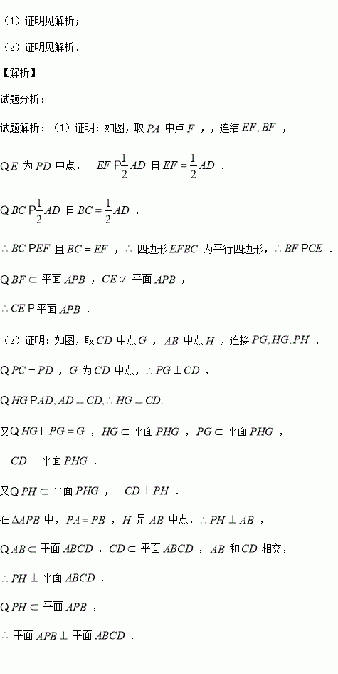 (1)若E為PD中點(diǎn),證明CE//平面APB;