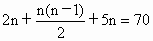 甲、乙兩物體分別從相距70m的兩處同時(shí)相向運(yùn)動(dòng)。甲第一分鐘走2m,以后每分鐘比前一分鐘多走1m,乙每分鐘都是走5m。