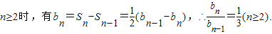 bn=Sn-Sn-1求得n≥2時的判斷出其為等比數(shù)列,公比為進而根據(jù)等比數(shù)列的通項公式求得bn