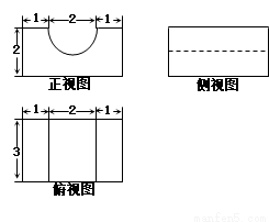 已知某幾何體的三視圖如圖,其中正視圖中半圓半徑為1,則該幾何體體積為( )