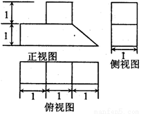 一個(gè)幾何體按比例繪制的三視圖如右圖所示(單位:cm),該幾何體的體積為_(kāi)_____cm3