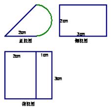 某幾何體的三視圖如右圖,其正視圖中的曲線部分為半個圓弧,則該幾何體的表面積為( )