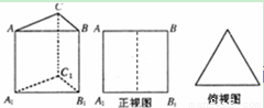 如圖,水平放置的三棱柱的側(cè)棱長(zhǎng)和底面邊長(zhǎng)均為2,且側(cè)棱![]()