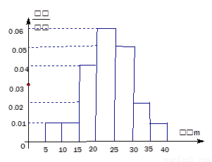 某棉紡廠為了了解一批棉花的質(zhì)量,從中隨機抽取了100根棉花纖維的長度(棉花纖維的長度是棉花質(zhì)量的重要指標),所得數(shù)據(jù)都在區(qū)間[5,40]中,其頻率分布直方圖如圖所示,則其抽樣的100根中,有_ ___根在棉花纖維的長度小于20mm。