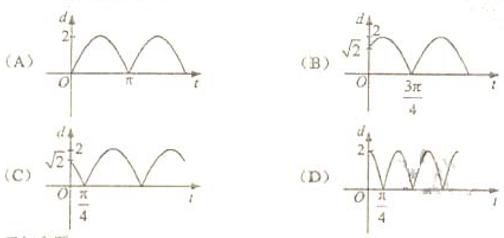 ),角速度為1,那么點(diǎn)P到x軸距離d關(guān)于時(shí)間t的函數(shù)圖像大致為